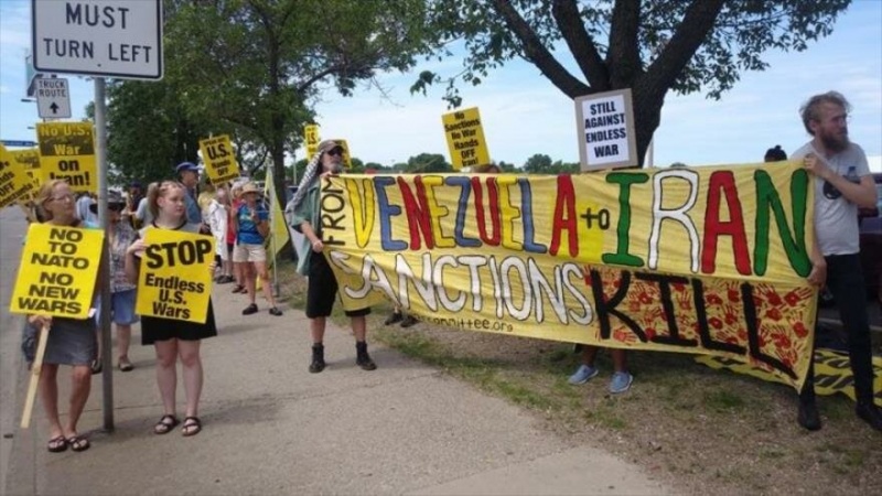 Manifestantes en el estado de Minnesota condenaron las sanciones de EE.UU. contra Irán, Venezuela y Cuba y se solidarizaron con los pueblos de estos países.