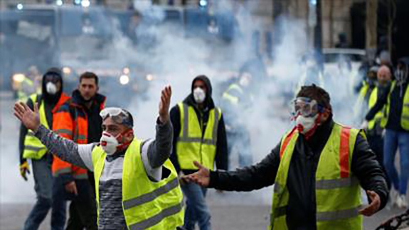 Los chalecos amarillos han salido este sábado a las calles de París, capital francesa, para seguir sus protestas, pese a que el Gobierno de Francia ha prohibido los actos públicos con participación de más de cien personas y establecido restricciones a causa de la pandemia de coronavirus.