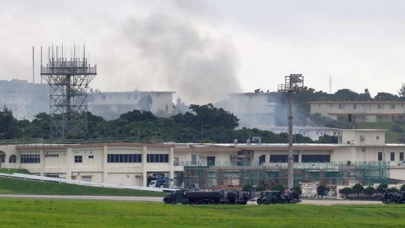 Video: Un incendio en una base aérea estadounidense en Japón