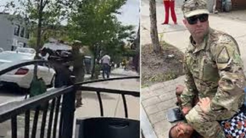 ParsToday - Un vídeo impactante muestra cómo un soldado blanco estadounidense golpea a un hombre negro y se sienta en su pecho