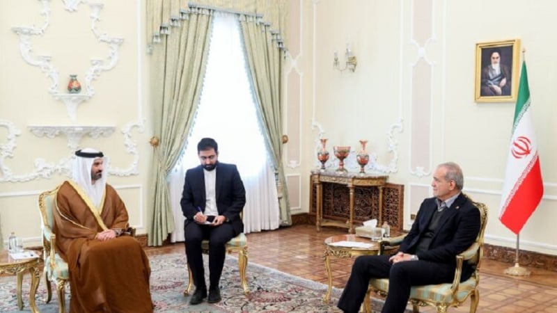 مسعود پزشکیان، رئیس جمهوری اسلامی ایران ، سمت راست - خالد عبدالله بالهول سفیر جدید امارات متحده عربی در ایران سمت چپ