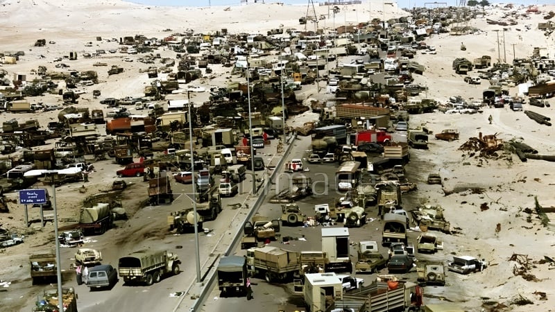 بزرگراه مرگ؛ صحنه نابودی خودروها و ادوات نظامی عراقی پس از حمله آمریکا و انگلیس