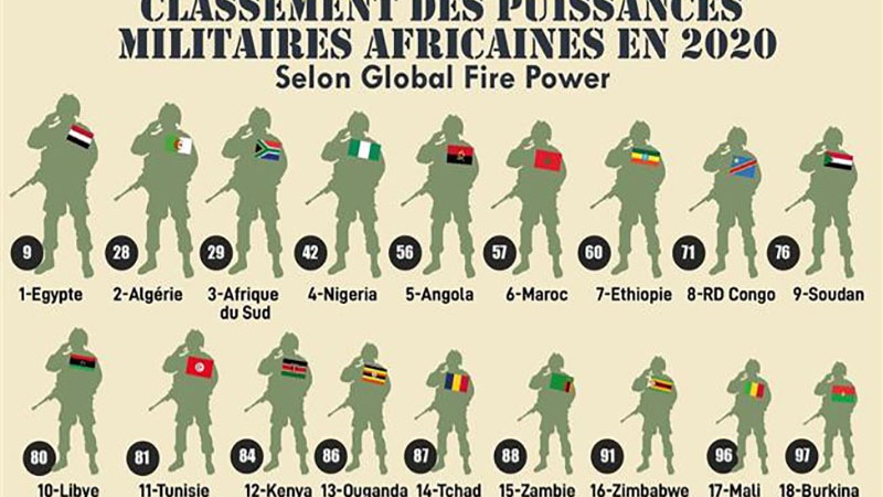 L'armée centrafricaine, est quant à elle classée 101e d'Afrique et 129e du monde et pourtant les efforts du président Touadéra et ses coopérations avec la Russie auraient dû pousser le site américain à revoir sa copie. Quant à l'armée tchadienne qui a réussi lors de la spectaculaire opération de Colère de Bouam et réduit en cendres les terroristes mandatés par les services secrets occidentaux; le site la classe au 14e rang et pourtant depuis le départ du Tchad du G5 Sahel, l'armée française est totalement paralysée... ces classifications ne visent qu'une chose : sous-estimer les armées africaines, leur insinuer le sentiment d'impuissance et de besoin perpétuel aux puissances occidentales. Sinon comment expliquer le coup d'État au Mali et l'arrivée au pouvoir d'une junte militaire fantoche dont les ficelles sont tirées par Paris et tout ceci dans l'objectif de mettre face à face l'armée et le peuple malien.