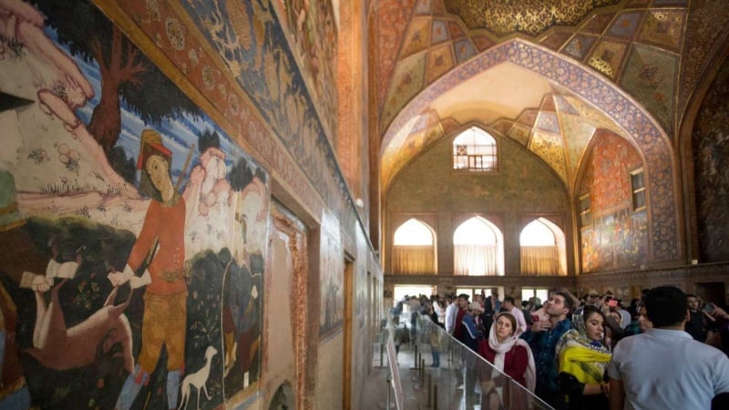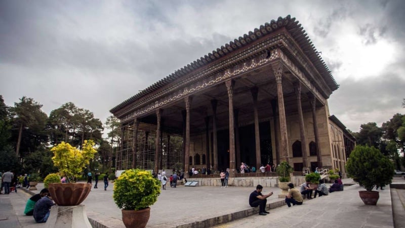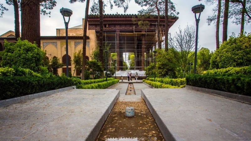 Le palais Chehel Sotoun ou palais aux quarante colonnes est un palais de type iranien qui, comme son nom l'indique, possède un grand nombre de colonnes.