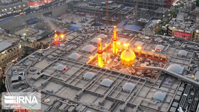 Vue aérienne du saint mausolée de l'Imam Hussein et de Beynolharameyn à Karbala en Irak, jeudi soir 17 octobre 2019, à la veille du grand rassemblement religieux d'Arbaïn.