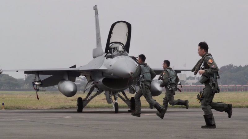 Avant le décollage, les équipages de conduite d'une base de la ville méridionale de Chiayi – qui abrite des avions de combat F-16 de fabrication américaine qui sont fréquemment utilisés pour intercepter les avions de guerre de la Chine – se sont précipités pour préparer les avions lorsqu'une alarme a retenti.