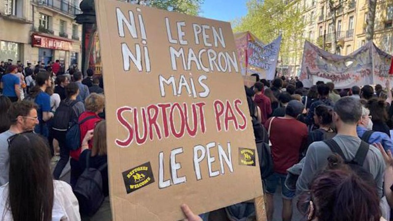 Les manifestants portaient des pancartes manuscrites soulignant la protestation contre les deux candidats français au second tour. On pouvait lire sur les pancartes : « Ni Macron, ni Le Pen », indique Sputnik ajoutant que la présence des forces de sécurité et de la police se faisait également remarquer dans cette foule nombreuse.