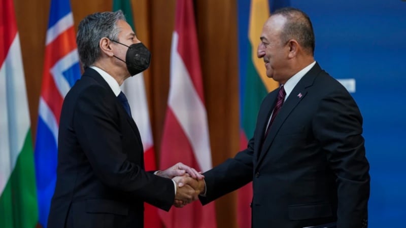 Blinken s’est entretenu avec des journalistes avant sa réunion avec le ministre turc des Affaires étrangères, Mevlüt Çavuşoglu.