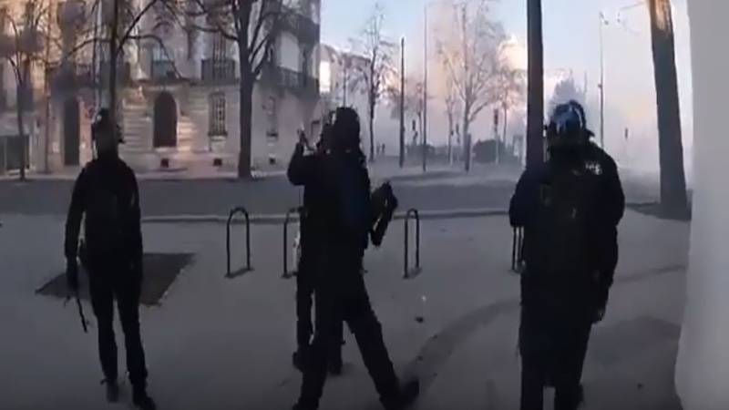 Acte XIV : un CRS frappe un photographe Gilet jaune à Dijon.