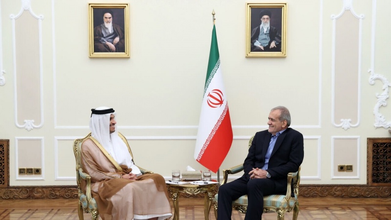 נשיא הרפובליקה, מסעוד פזשכיאן, קיבל (שני) את ראש הממשלה, שר החוץ של קטאר, שייח' מוחמד בן עבדול רחמן אל תאני, הגדיר את היחסים הפוליטיים בין הרפובליקה האסלאמית באיראן לקטאר מצויינים, והדגיש את הצורך לפתח את היחסים גם בתחומים הנוספים לרמת היחסים הפוליטיים.