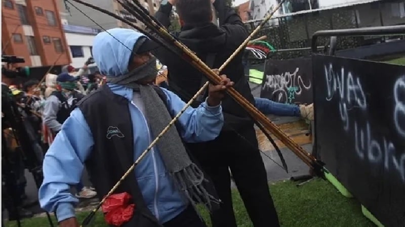 במהלך מספר ימים, הפגנות אלו הסלימו לעימות עם שוטרים בשגרירות ארה"ב בבוגוטה, ותמונות שפורסמו ברשתות החברתיות הראו קשתים משתתפים בעימותים.