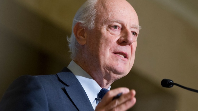 כך בא בהודעה שלשכתו של דה מיסטורה פרסמה ונמסר כי הוא קיים שיחות עם סגן שר החוץ לעניינים מדיניים חוסיין ג'אברי אנסארי, בכיר הנושאים ונותנים בשיחות אסטנה לשלום בסוריה שהכריז כי הפגישות עם הגורם הבינלאומי היו חיוביות וכי טהראן העלתה כמה יוזמות והצעות מעשיות כדי ליישב את המשבר בסוריה ולהתחיל לנסח את החוקה הסורית החדשה.
