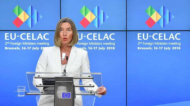 שרת החוץ של האיחוד האירופי, פדריקה מוגריני, פרסמה הצהרה משותפת יחד עם שרי החוץ של צרפת, בריטניה וגרמניה, ובה נמסר כי "אנו מביעים צער על חידוש הסנקציות האמריקניות. השותפות הנותרות בהסכם הגרעין מחויבות לפעול לשימור יחסים כלכליים אפקטיביים עם איראן, וכן לאפשר את המשך יצוא הנפט והגז האיראניים".