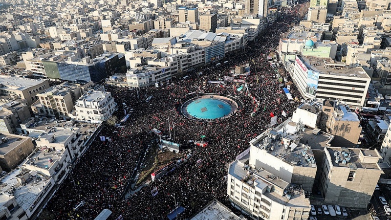 בטקס תפארתי שדומה רק לטקס יום האבל הגדול עשורא, השתתפו מיליוני איראנים בהלוויתם של החללים המפקדים קאסם סולימאני ואבו מהדי אל־מוהנדס בטהראן. חלק גדול מהמשתתפים באו לבירה ממחוזות שונים, קרובים כרחוקים. המשתתפים בהלוויה הממלכתית והמפוארת ביותר נשאו דמויות של גיבורי המלחמה בטרור מול דאעש וקראו לנקמה חזקה וכואבת בארה"ב על דמם של השהידים.
