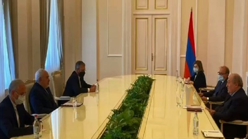שר החוץ מוחמד ג'ואד זריף נועד אחרי צהרי אתמול (רביעי) עם נשיא ארמיניה ארמין סרקיסיאן, ודן עמו על השאלות מעניינות את שתי המדינות. שר החוץ זריף קיים שיחות גם עם ראש ממשלת ארמיניה בפועל ארה איבניאן. זריף שהגיע ליריבן מבאקו, כתב בחשבון בטוייטר שלו כי במהלך ביקורו בארמיניה ואזרבייג'אן קיים שיחות על הקשרים הדו-צדדיים וההתפתחויות באזור, כאשר הדגיש עמדת איראן המכבדת את האחדות הטריטוריאלית של כל המדינות. עוד אמר כי איראן מקבלת בברכה השגת הסכמים בין שתי המדינות.