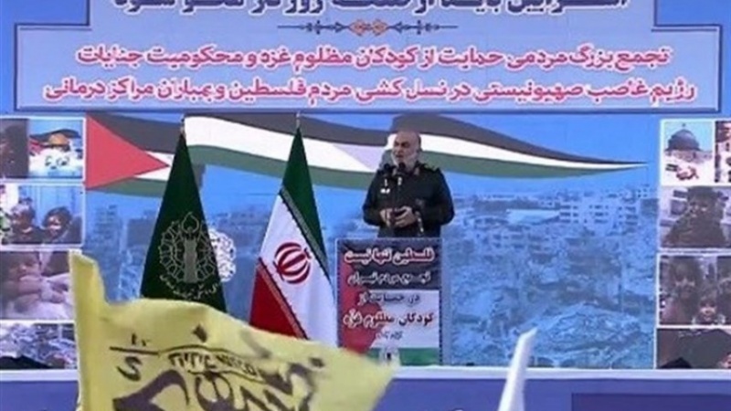 מפקד משמרות המהפכה הדגיש כי הציונים, מעתה ואילך, לא יידעו מנוחה ושקט והוסיף: כי ארה"ב ו"ישראל" רואים  בפגיעה בילדים בעזה, ניצחון בעוד, זו סטיגמה גרועה ביותר לארה"ב ו"ישראל". שבמקום להתמודד עם הלוחמים הפלסטינים