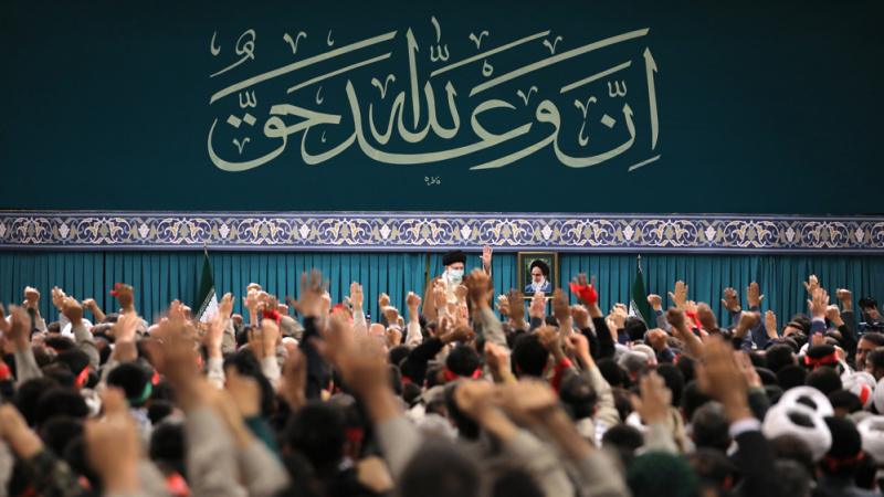 מנהיג המהפכה אייתאללה סייד עלי חמנאי קיבל בפגישה אלפי בסיג'ים.