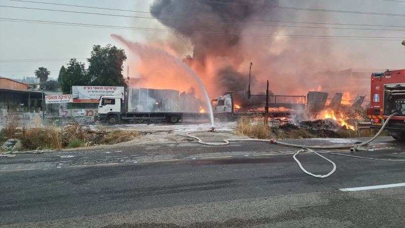 שריפה גדולה פרצה במפעל בוואדי עארה, סמוך לכביש 65