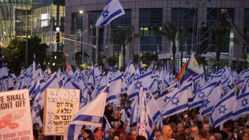 אלפים מפגינים נגד המהפכה המשפטית מחוץ לבית שר המלחמה יואב גלנט.