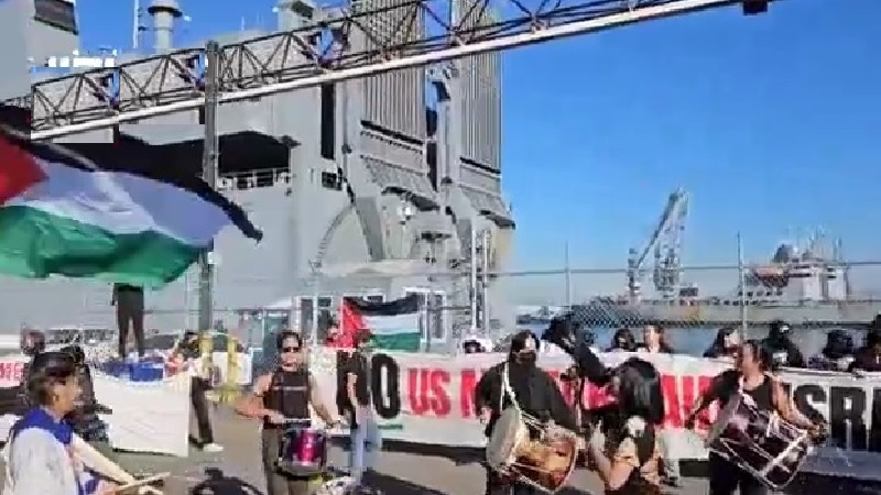 מוחים אמריקנים נגד המלחמה בעזה פרצו לספינה צבאית בנמל בקליפורניה
