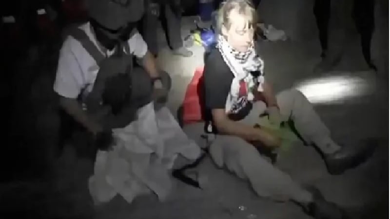 גרטה במהלך מעצרם של פעילי משט "היציבות" על ידי כוחות הכיבוש