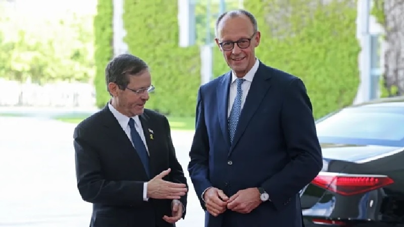 קנצלר גרמניה (מימין) מקבל את פני נשיא ישראל בברלין במאי האחרון