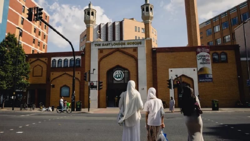 בנות חוצות את הרחוב לכיוון מסגד בלונדון