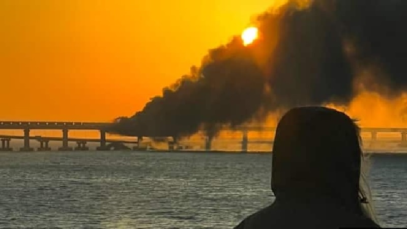 שריפה עזה תועדה בגשר קרים, שמחבר בין רוסיה לבין חצי האי שאותו היא סיפחה מאוקראינה ב-2014.