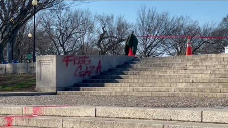 אנדרטת לינקולן בוושינגטון רוססה בכיתוב: לשחרר את עזה