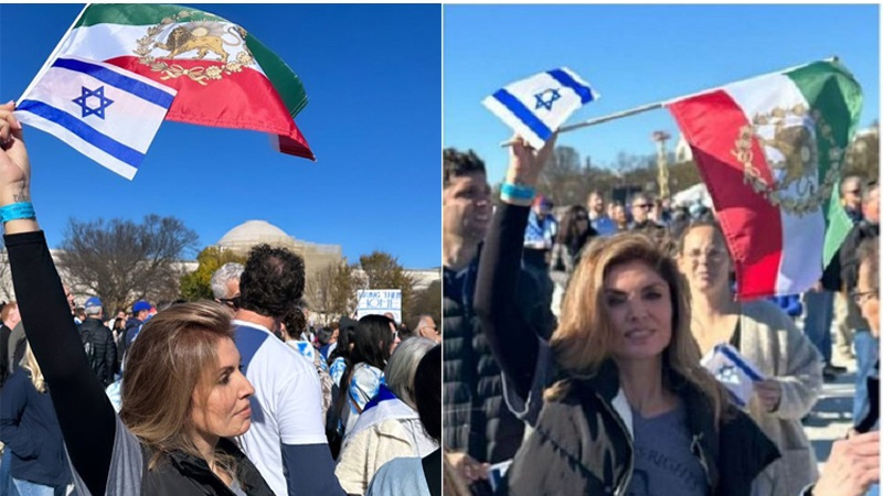 वाशिंगटन में इस्राईल के समर्थन में भाग लेती हुई रज़ा पहलवी की बीवी यासमीन पहलवी