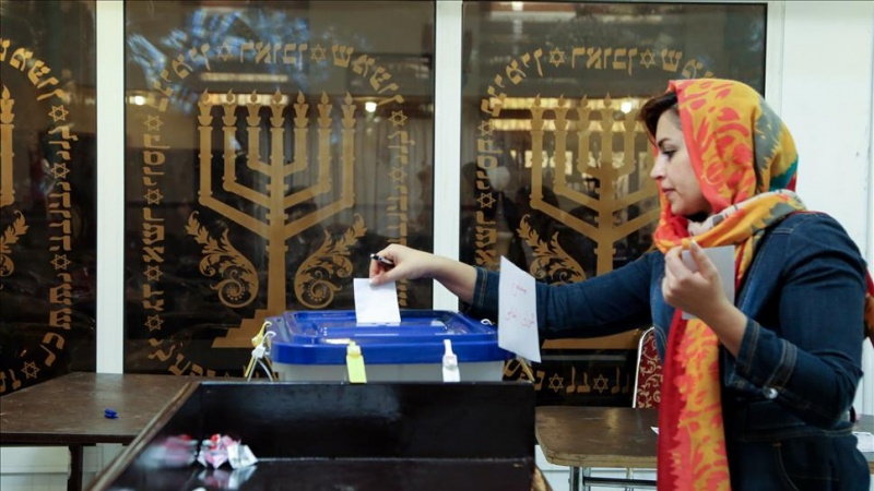 ईरान की बारहवीं संसद के चुनावों में मतपेटी के पास एक अल्पसंख्यक महिला की मौजूदगी
