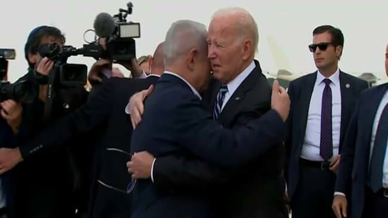 अमेरिकी राष्ट्रपति जो बाइडेन ऐसी स्थिति में अवैध अधिकृत फिलिस्तीन पहुंचे हैं कि जब वाइट हाउस ने कहा है कि जो बाइडेन की यात्रा का लक्ष्य प्रतिरोध के मुकाबले में इस्राईल का समर्थन करना है। वाइट हाउस ने कहा है कि बाइडेन के अवैध अधिकृत फिलिस्तीन पहुंचने से पहले आज सुबह उन्होंने नेतेनयाहू से टेलीफोन पर बात की थी। इस टेलीफोनी वार्ता में दोनों पक्षों ने गज्ज़ा पट्टी के अलमामदानी अस्पताल पर बमबारी के बारे में भी वार्ता की थी।