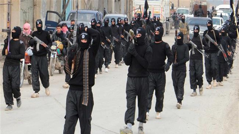 इस फ़ाइल फ़ोटो में दाइश के आतंकी सीरिया के उत्तरी प्रांत रक़्क़ा के तल अब्यज़ क़स्बे में सड़क पर परेड करते हुए दिखाई दे रहे हैं