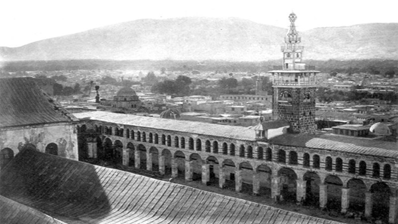 जिस स्थान पर ‘मस्जिदे उमवी’ है उस स्थान पर पुरातनविदों के अनुसार आग के पूजने वालों का उपासना स्थल था। इस तरह इस मस्जिद का इतिहास ईसापूर्व से मिलता है। रोमी साम्राज्य ने इस उपासना स्थल पर क़ब्ज़े के बाद इसे अपना उपासना स्थल क़रार दिया। उसके बाद हज़रत ईसा अलैहिस्सलाम के प्रकट होने और ईसाई धर्म के फैलने से यह उपासना स्थल गिरजाघर बन गया। यह स्थिति इसी तरह जारी रही यहां तक कि मुसलमानों ने सीरिया को फ़त्ह किया और वे इस स्थान को नमाज़ पढ़ने के लिए इस्तेमाल करते रहे। अलबत्ता मुसलमानों ने इसके एक भाग को गिरजाघर के रूप में ईसाइयों के लिए बाक़ी रखा। यह स्थिति लगभग 70 साल तक जारी रही और मुसलमान-ईसाई एक दूसरे के पड़ोस में धार्मिक कर्तव्य अंजाम देते रहे। 705 ईसवी में जब मुसलमानों का शासन उमवी शासक वलीद बिन अब्दुल मलिक के हाथ में पहुंचा तो उसने गिरजाघर वाले भाग को भी मस्जिद से जोड़ दिया। उमवी शासक ने प्राचीन गिरजाघर पर रोमी वास्तुकला में बनी पुरानी बुर्जियों को मीनार में बदल दिया और उसके ऊपर से अज़ान दी जाने लगी। उमवी शासन से पहले मीनार के निर्माण का चलन न था और इसकी पहल उन बुर्जियों के आधार पर है जो सीरिया के उपासना स्थलों में थी।