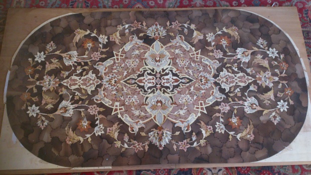 शुरू में विभिन्न रंगों की लकड़ियों और हड्डियों को तैयार किया जाता है और उन्हें 30 सेंटीमीटर की लम्बाई और दो से ढाई सेंटीमीटर की चौड़ाई में काटा जाता है। उसके बाद उन्हें इस प्रकार रखा जाता है कि उनसे एक त्रिकोण बन जाता है। इसके बाद, त्रिकोणों को एक दूसरे के साथ रखा जाता है और धीरे धीरे केन्द्रीय त्रिकोण की चौडाई को ज़्यादा किया जाता है, इस प्रकार मूल रूप और रंग उभर कर आता है। मिसिलबंदी के बाद, समस्त कोण डिज़ाइन के अनुरूप आ जाते हैं। डिज़ाइन को पूरा करने के लिए तारों की ज़रूरत होती है कि जो लकड़ियों के बीच में या उन्हें मज़बूत बनाने के लिए इस्तेमाल किए जाते हैं।