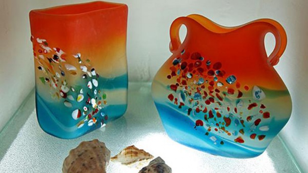 शीशा चित्रकारी के लिए सबसे उचित पृष्ठिभूमि मुहैया करता है क्योंकि रंगों की विविधता बहुत ही अच्छे रूप में प्रदर्शित होती है। इस बात को नज़रअंदाज़ करते हुए कि शीशे के बहुत अच्छे बर्तन पर दक्ष चित्रकारी या जटिल तक्षणकला बहुत सुंदर लगती है कभी कभी सादा शीशे का बर्तन, आम रंगीन डीज़ाइन के कारण बहुत सुंदर लगता है।