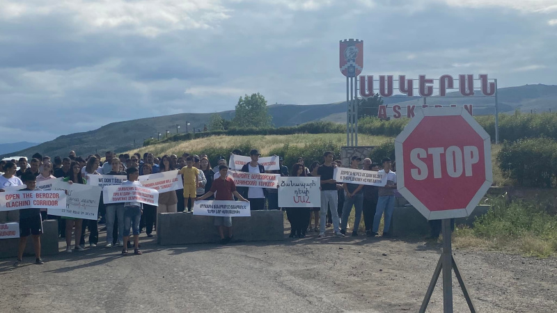 «Բողոքի ակցիա Ասկերան-Ակնա(Աղդամ) ճանապարհին եւ բետոնե արգելապատնեշների տեղադրում»,- նշել է նա։