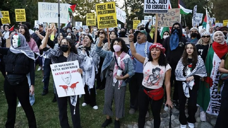 Կալիֆորնիա նահանգում ԱՄՆ նախագահ Ջո Բայդենի 2024 թվականի նախընտրական քարոզարշավի համար դրամահավաքի միջոցառման շրջանակում հավաքվել էին Պաղեստինի հարյուրավոր աջակիցներ և ի աջակցություն Գազայի ժողովրդի, Բայդենին անվանել «ցեղասպան Ջո» ։
