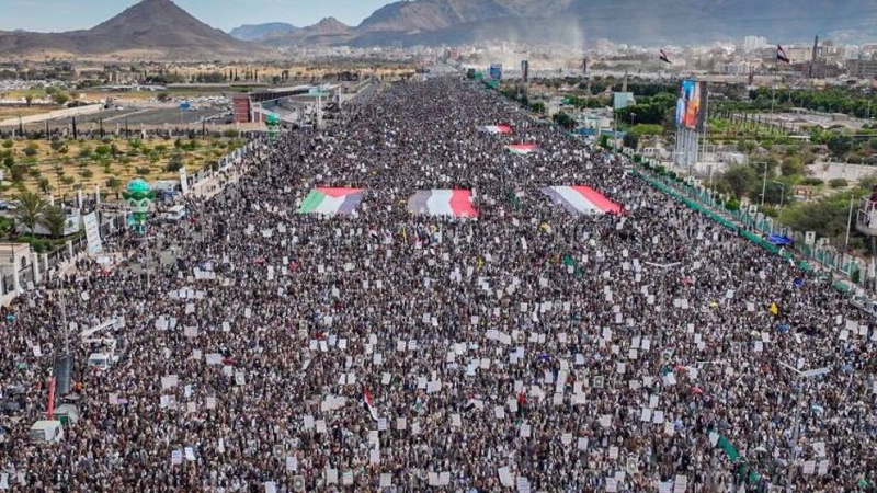 Jaringan Al-Masirah menggambarkan kehadiran jutaan warga Yaman yang mendukung perjuangan Palestina dan perjuangan melawan agresi Amerika sebagai "badai jutaan orang."
