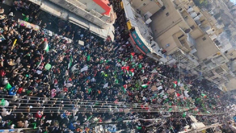 Warga Yordania kembali menggelar demonstrasi dalam rangka peringatan berdirinya gerakan Hamas, dan menuntut diakhirinya genosida warga Palestina dan pengepungan Jalur Gaza oleh tentara rezim Zionis.