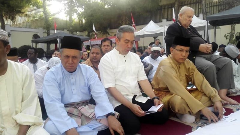 Duta Besar Palestina untuk Republik Islam Iran Salah al-Zawawi menunaikan Shalat Idul Adha di Wisma Kedutaan Besar Republik Indonesia (KBRI) di Tehran bersama para diplomat, staf KBRI dan korps diplomatik negara-negara Muslim dan negara-negara ASEAN serta para tamu undangan lainnya.