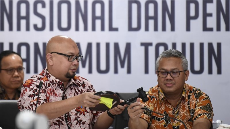 Hasil rekapitulasi tingkat nasional secara keseluruhan diumumkan KPU di Gedung KPU RI, Selasa dini hari (21/05).