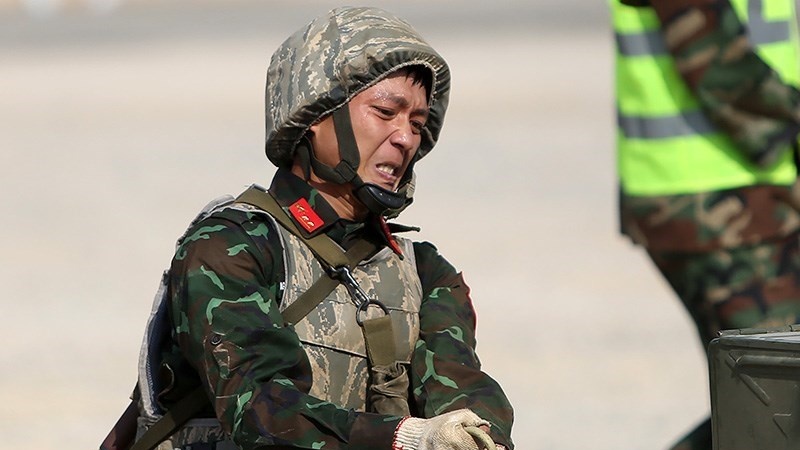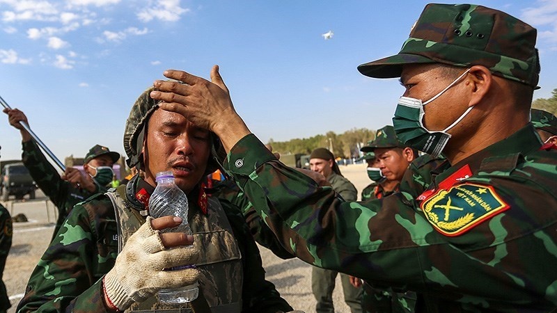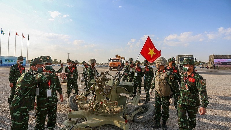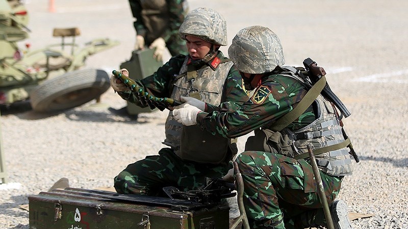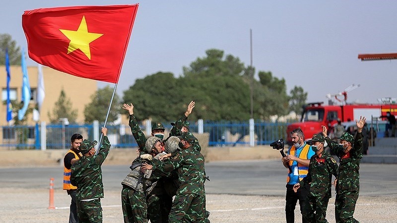 Tentara Vietnam mengikuti lomba di Isfahan, Rabu (25/8/2021).