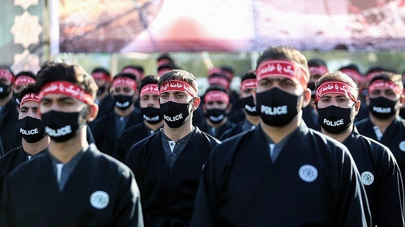 Apel pagi polisi Tehran memperingati Pekan NAJA, Senin (11/10/2021).