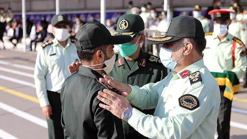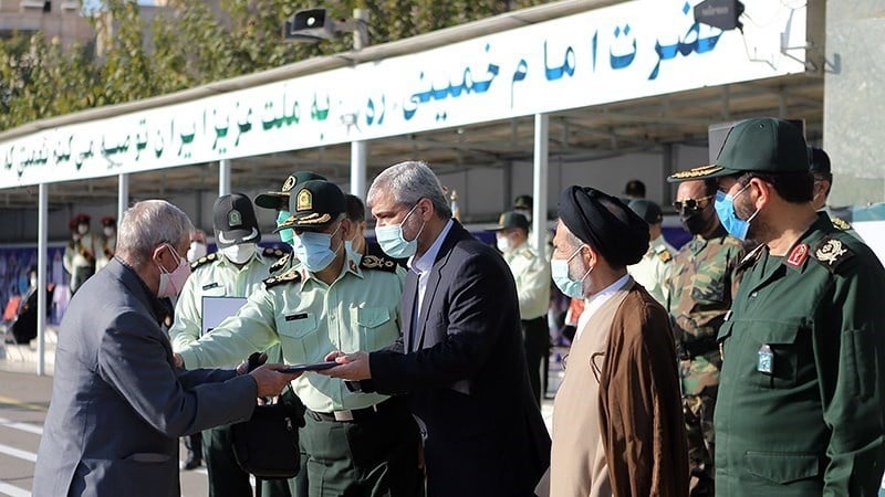 Anggota polisi di Provinsi Tehran dari berbagai satuan mengikuti apel pada Senin pagi, 11 Oktober 2021 untuk memperingati Pekan NAJA (Kepolisian Republik Islam Iran). Pekan NAJA dimulai pada hari Sabtu, 9 Oktober 2021.