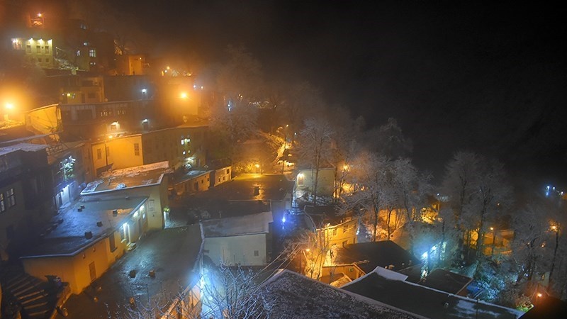 Salju turun dan menutupi Masuleh pada hari Rabu (17/11/2021) yang bertepatan dengan tangga; 26 Aban 1400 HS. Aban adalah bulan kedelapan dalam kalender nasional Iran dan bulan kedua musim gugur di negara ini.