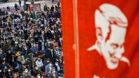 Ribuan warga Ahvaz, ibu kota Provinsi Khuzestan, Republik Islam Iran menghadiri haul kedua Syahid Letnan Jenderal Qassem Soleimani, Komandan Pasukan al-Quds Garda Revolusi Islam (IRGC) pada Jumat, 31 Desember 2021.