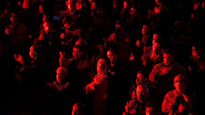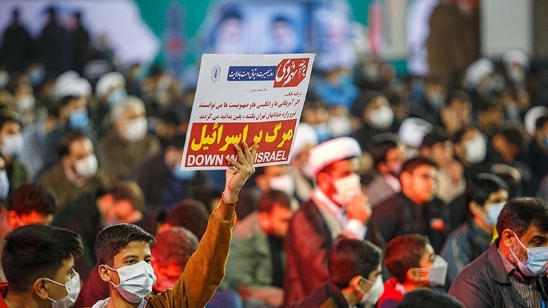 Ribuan warga Ahvaz, ibu kota Provinsi Khuzestan, Republik Islam Iran menghadiri haul kedua Syahid Letnan Jenderal Qassem Soleimani, Komandan Pasukan al-Quds Garda Revolusi Islam (IRGC) pada Jumat, 31 Desember 2021.