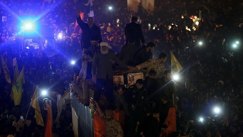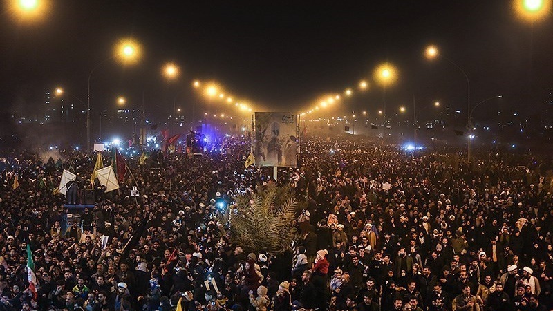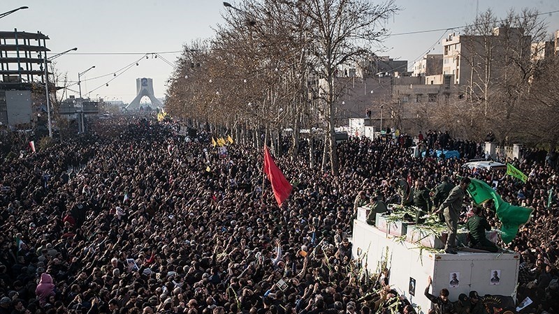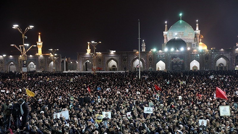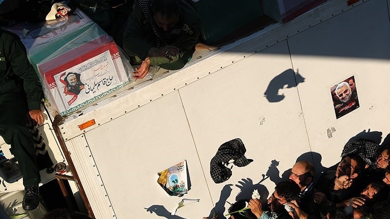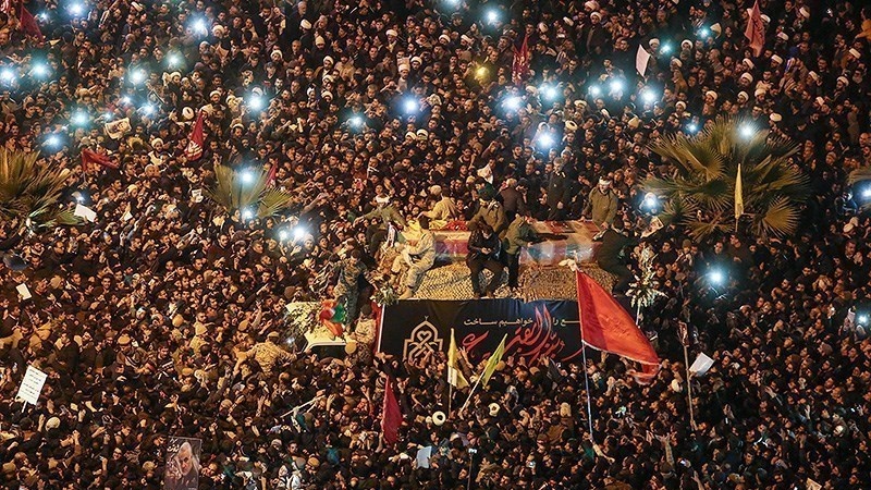 Tasyi' jenazah para Syuhada dilakukan dari kota Kadhimain, Baghdad, Najaf, Karbala, Ahvaz, Mashhad, Tehran dan Qom serta berakhir di Kerman. Tasyi' yang diikuti oleh jutaan orang ini berlangsung dari hari Sabtu, 4 Januari 2020 atau 14 Dey 1398 Hs hingga Rabu, 8 Januari 2020/ 18 Dey 1398 HS.
