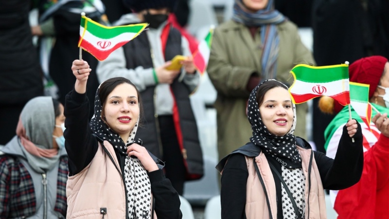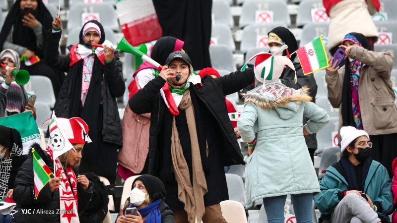 Para wanita Iran dan keluarga mereka memadati Azadi Stadium Tehran untuk menyaksikan pertandingan dari dekat.